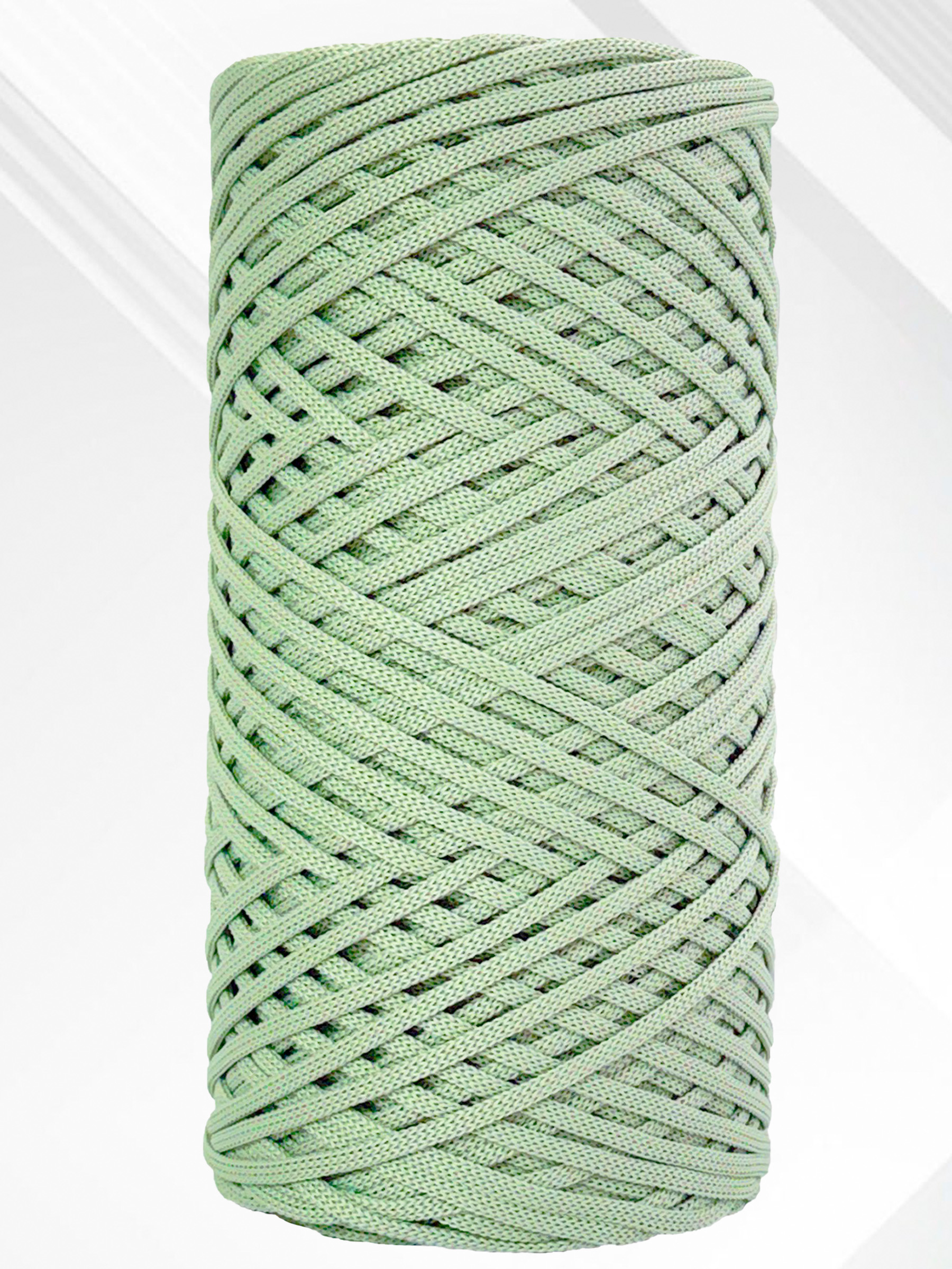 Этот полиэфирный шнур плоский, без сердечника и имеет небольшое растяжение, что придает ему отличную гибкость и легкость. Благодаря этим характеристикам он прекрасно подходит как для вязания крючком и спицами, так и для плетения в технике макраме.
