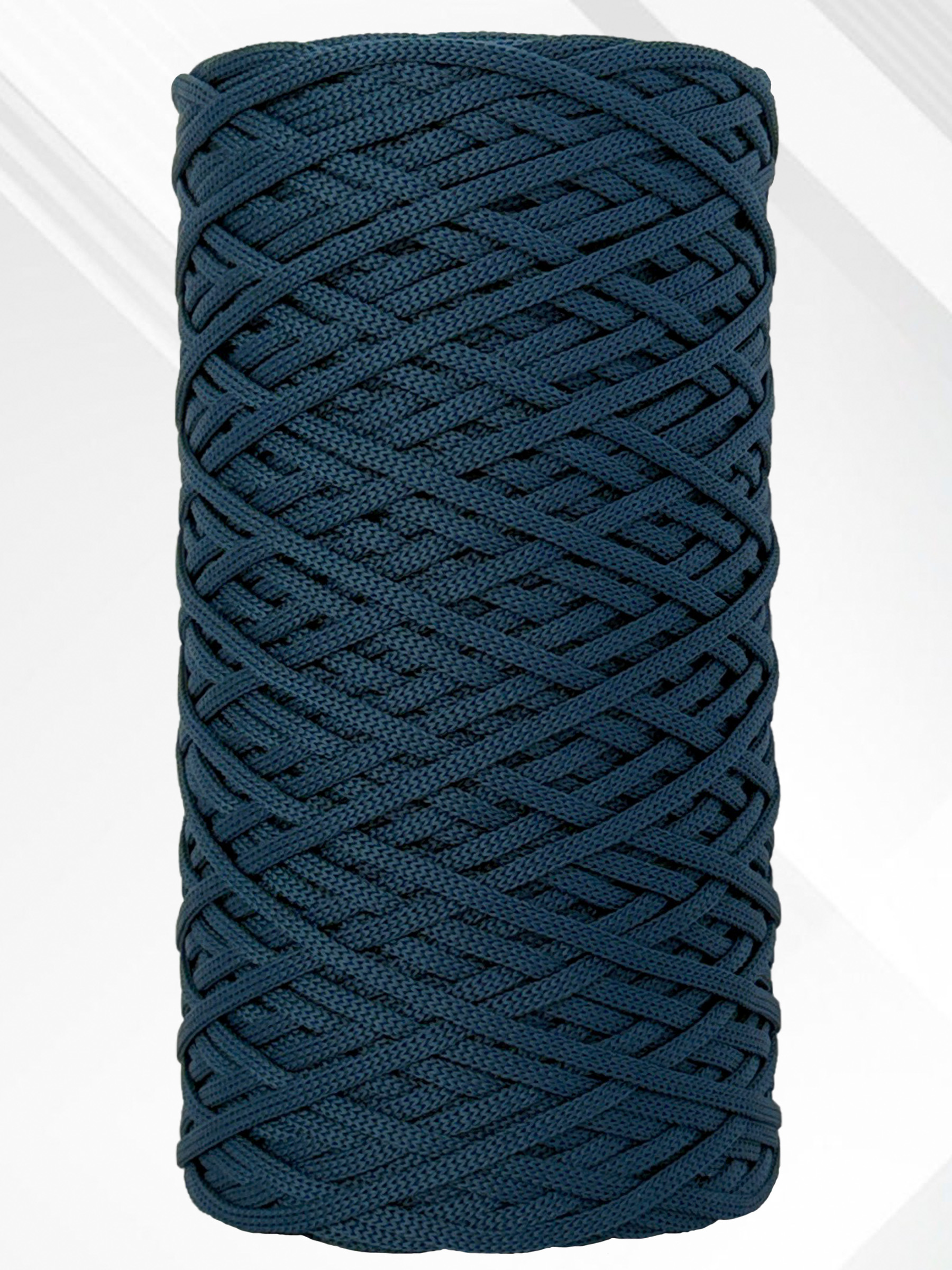 Этот полиэфирный шнур плоский, без сердечника и имеет небольшое растяжение, что придает ему отличную гибкость и легкость. Благодаря этим характеристикам он прекрасно подходит как для вязания крючком и спицами, так и для плетения в технике макраме.