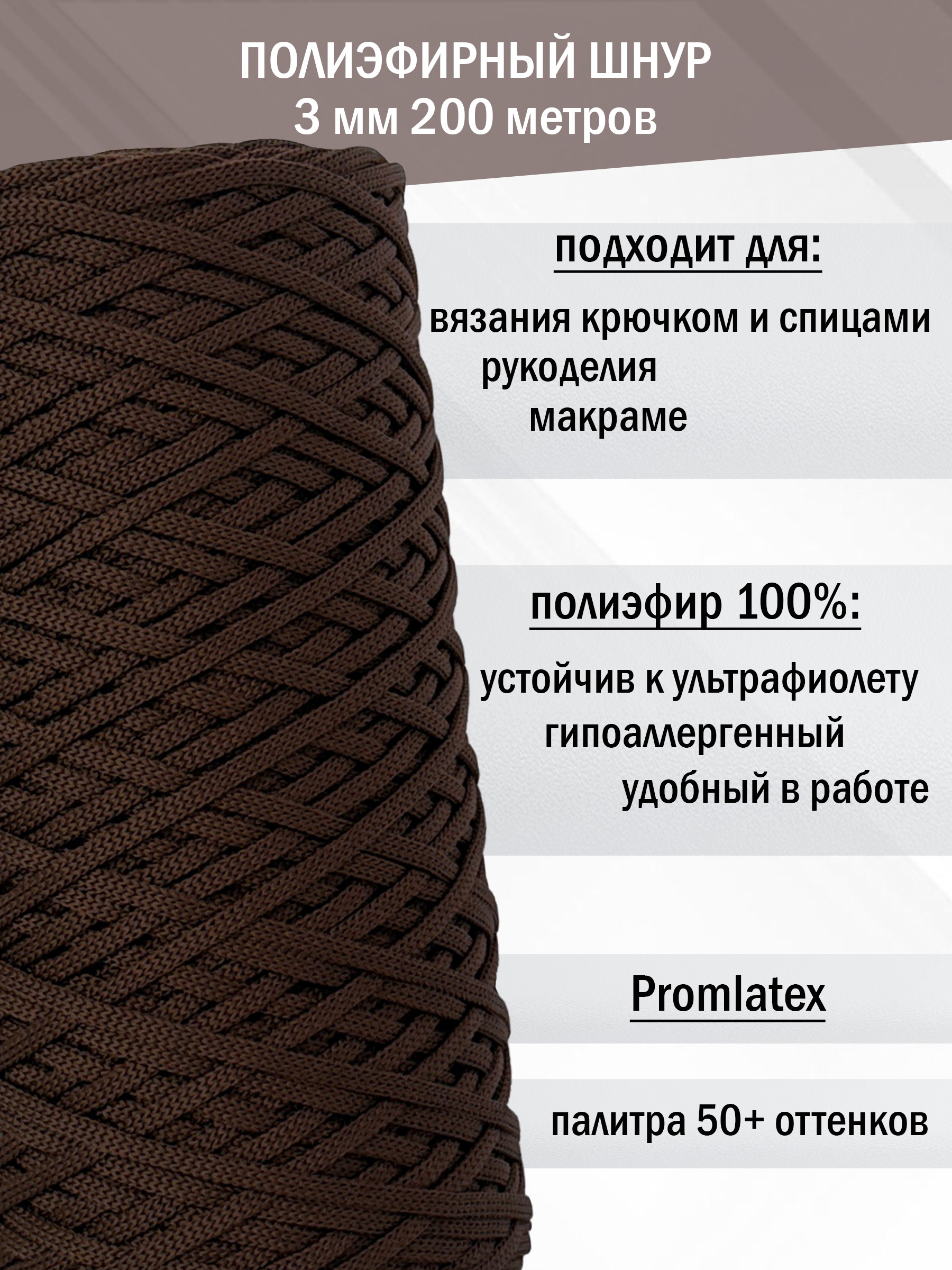 Полиэфирный шнур 3 мм (+/-0,5) от компании Promlatex (Промлатекс) — это материал, открывающий безграничные возможности для творчества и рукоделия. Благодаря своим свойствам, он идеально подходит для создания широкого спектра изделий.