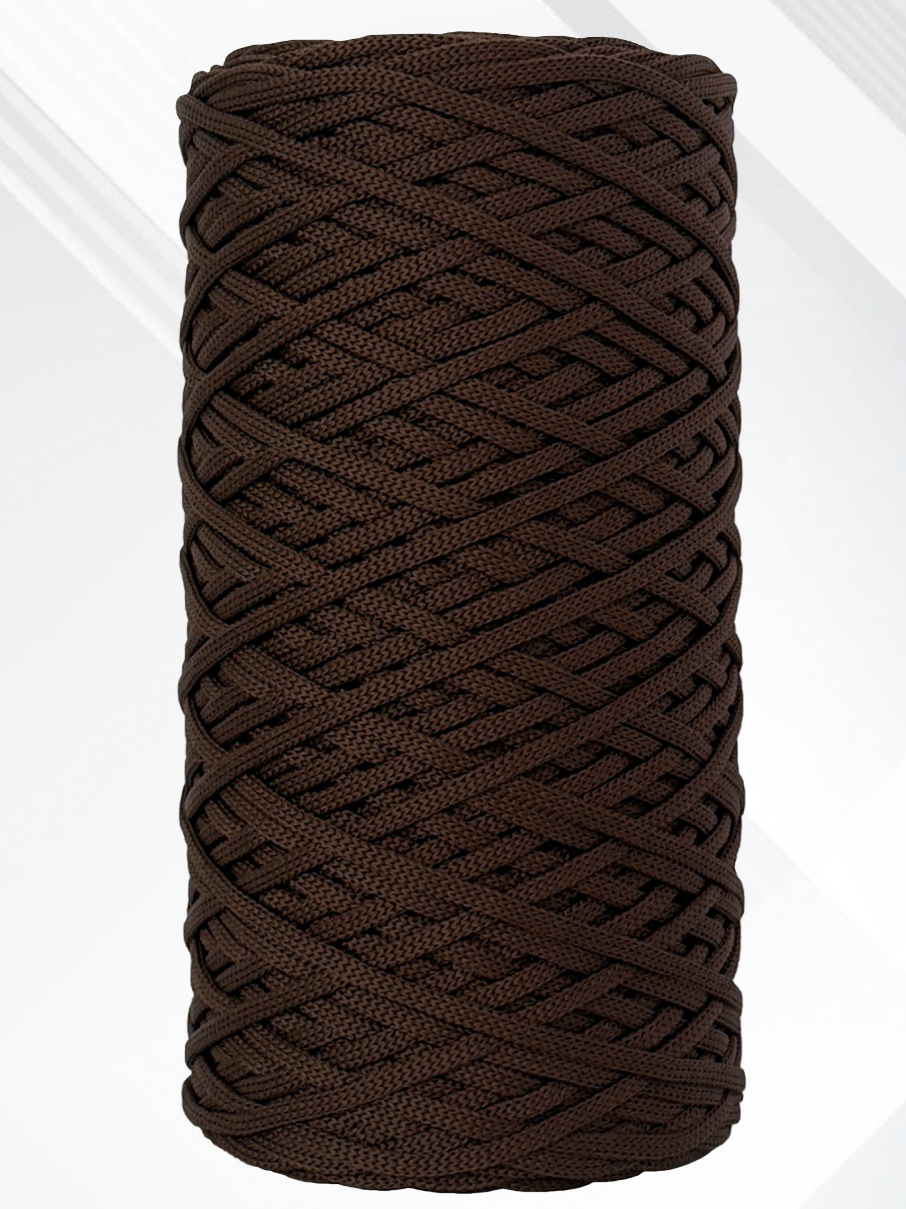 Этот полиэфирный шнур плоский, без сердечника и имеет небольшое растяжение, что придает ему отличную гибкость и легкость. Благодаря этим характеристикам он прекрасно подходит как для вязания крючком и спицами, так и для плетения в технике макраме.
