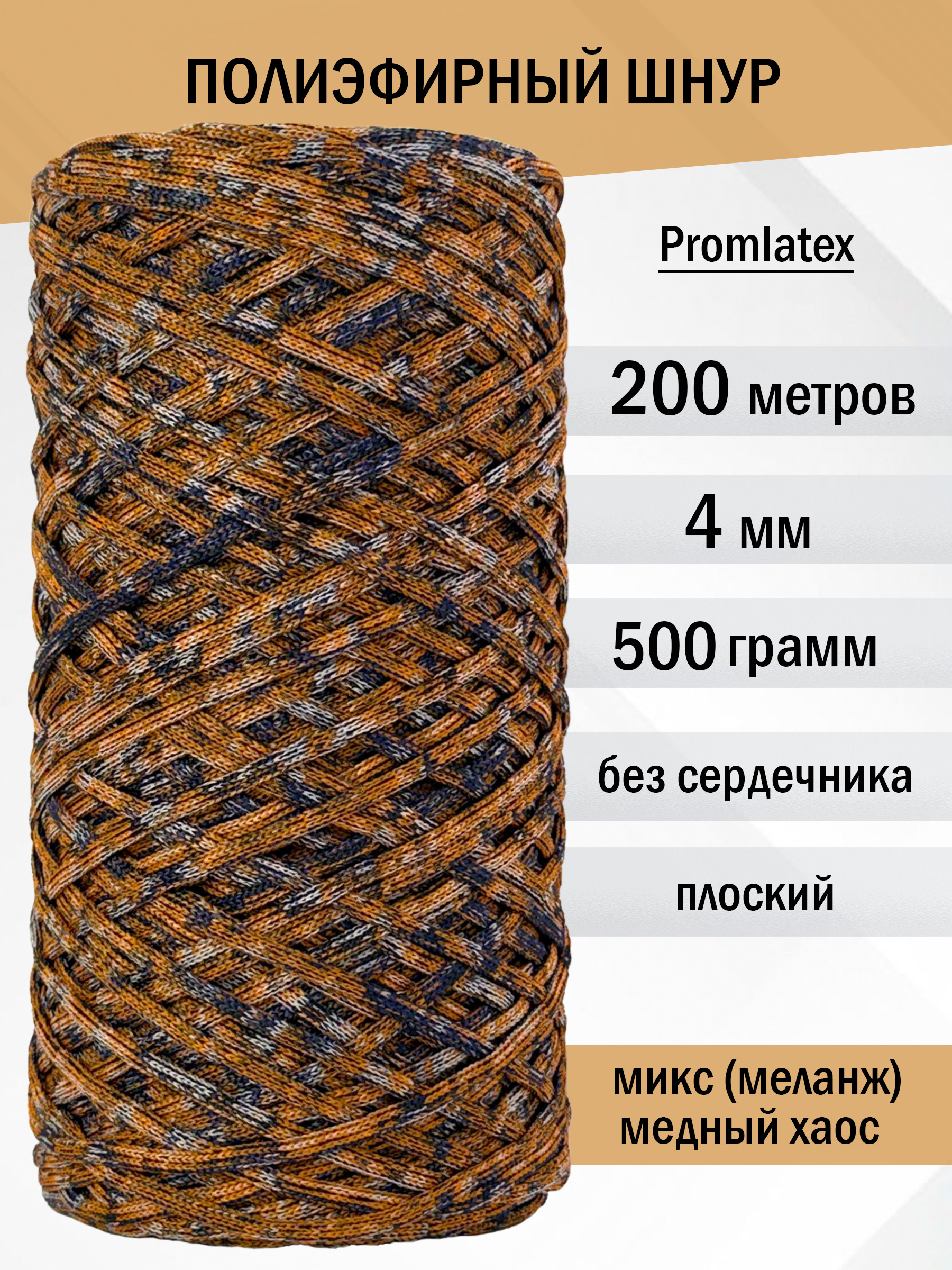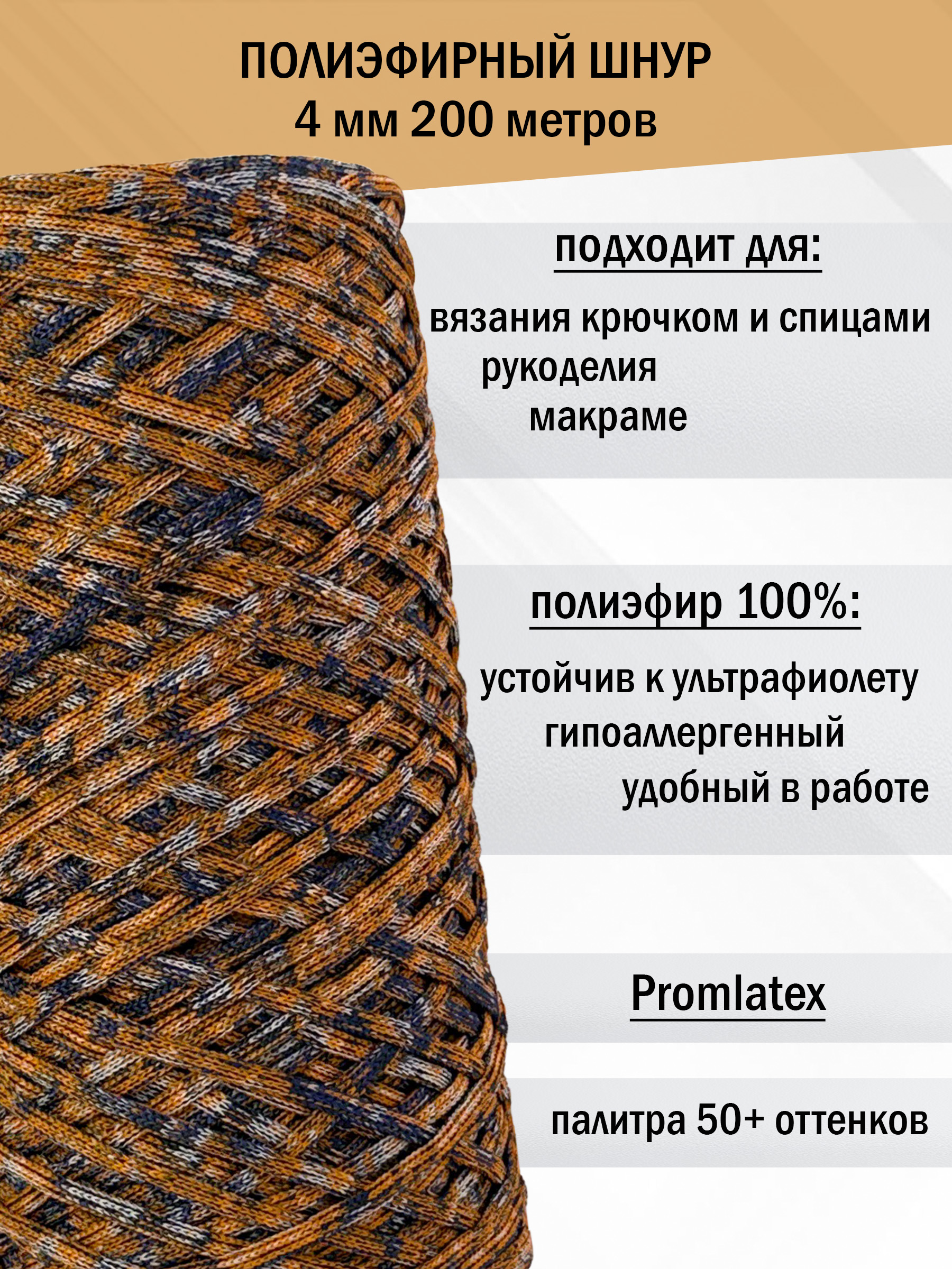 Полиэфирный меланжевый шнур 4 мм 200 м – купить | Магия шнура (бренд Promlatex)