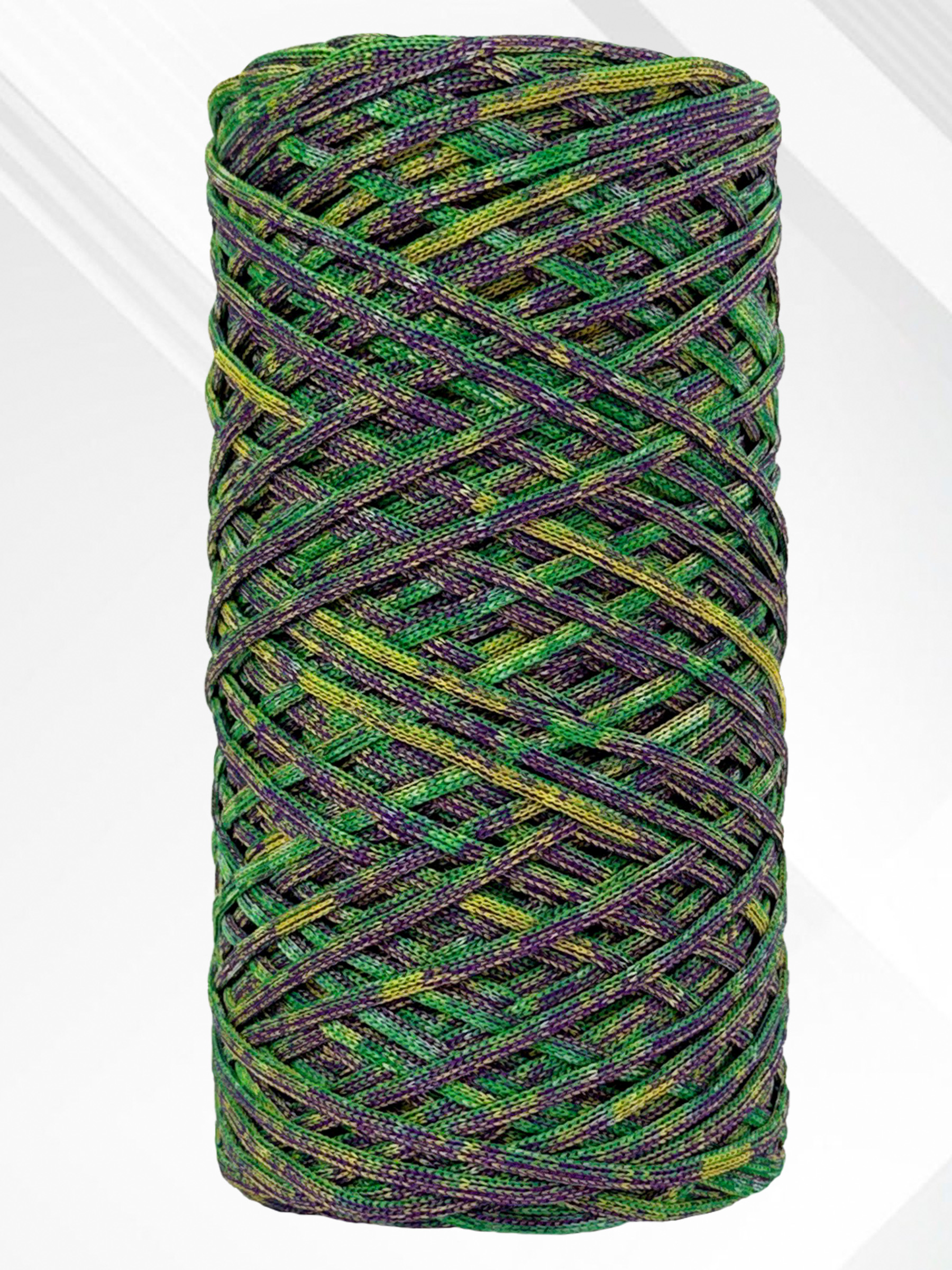 Этот полиэфирный шнур плоский, без сердечника и имеет небольшое растяжение, что придает ему отличную гибкость и легкость. Благодаря этим характеристикам он прекрасно подходит как для вязания крючком и спицами, так и для плетения в технике макраме.