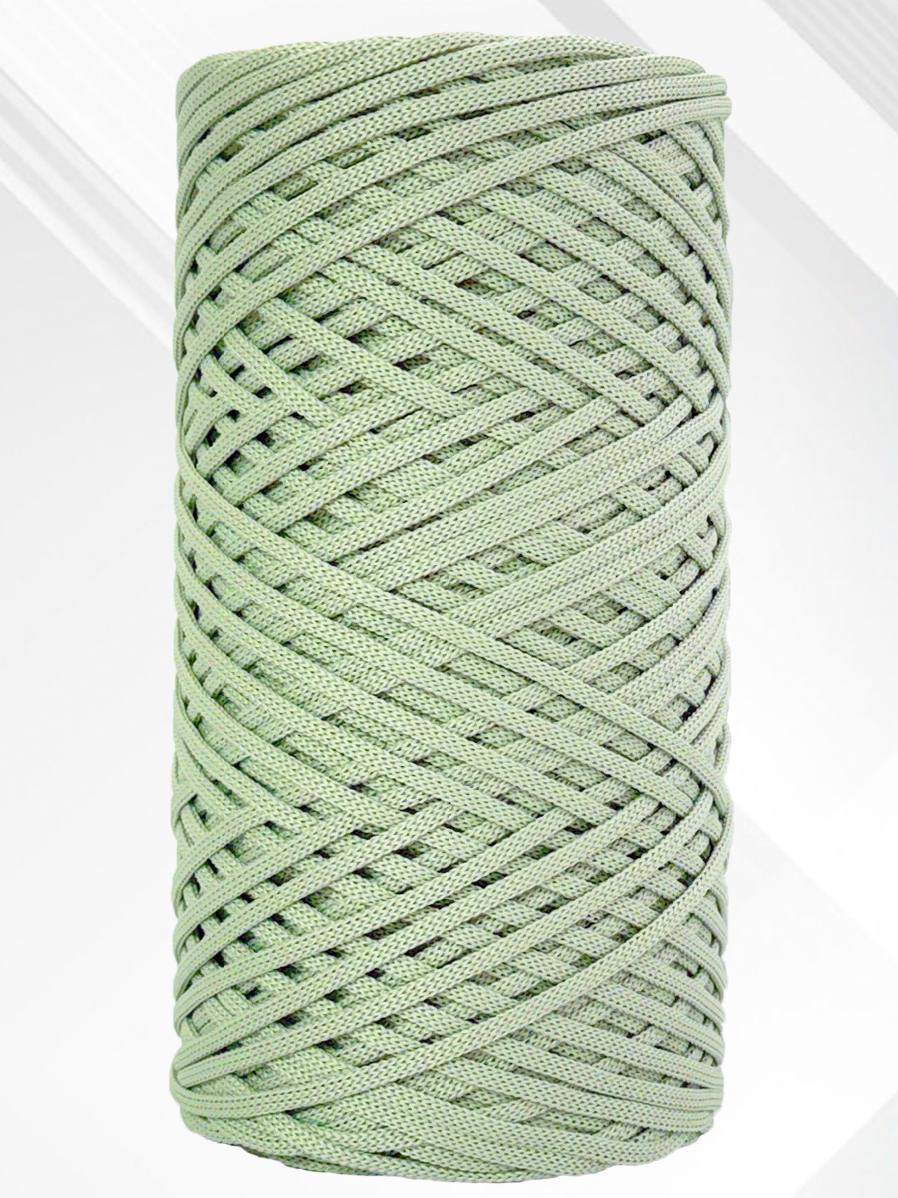 Этот полиэфирный шнур плоский, без сердечника и имеет небольшое растяжение, что придает ему отличную гибкость и легкость. Благодаря этим характеристикам он прекрасно подходит как для вязания крючком и спицами, так и для плетения в технике макраме.