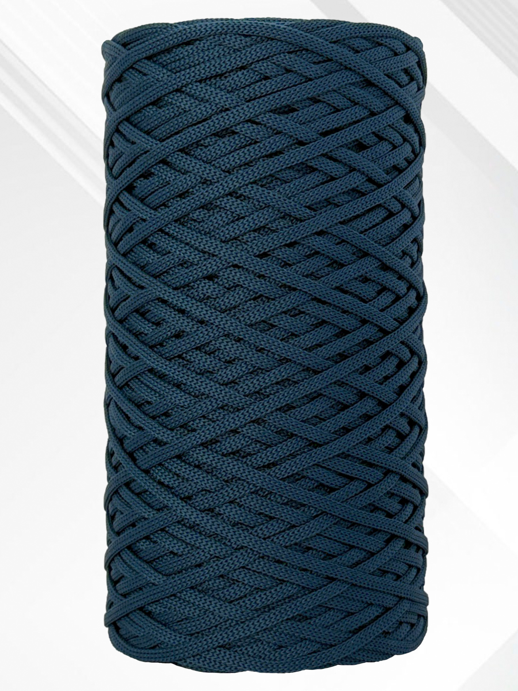 Этот полиэфирный шнур плоский, без сердечника и имеет небольшое растяжение, что придает ему отличную гибкость и легкость. Благодаря этим характеристикам он прекрасно подходит как для вязания крючком и спицами, так и для плетения в технике макраме.