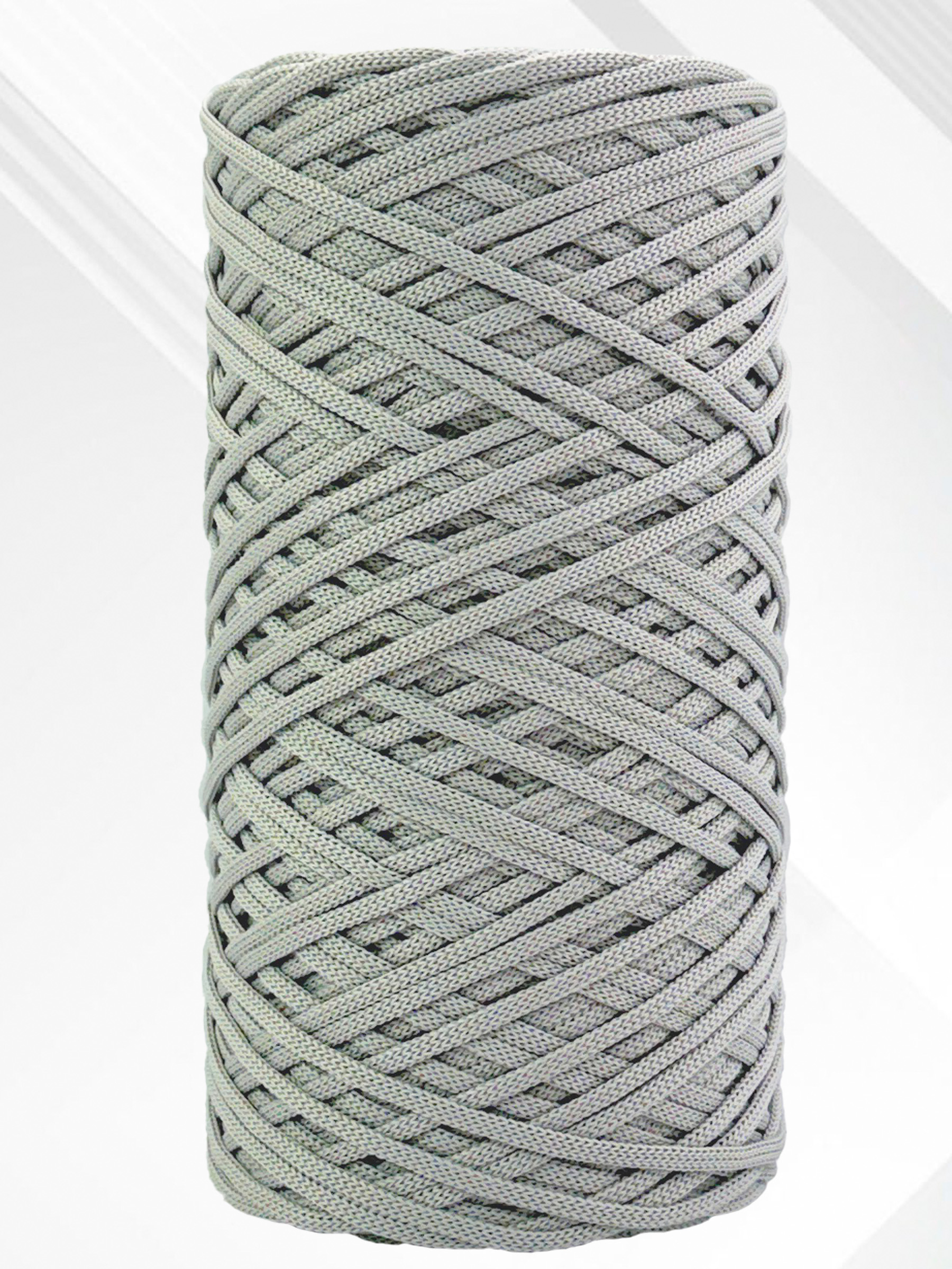 Этот полиэфирный шнур плоский, без сердечника и имеет небольшое растяжение, что придает ему отличную гибкость и легкость. Благодаря этим характеристикам он прекрасно подходит как для вязания крючком и спицами, так и для плетения в технике макраме.