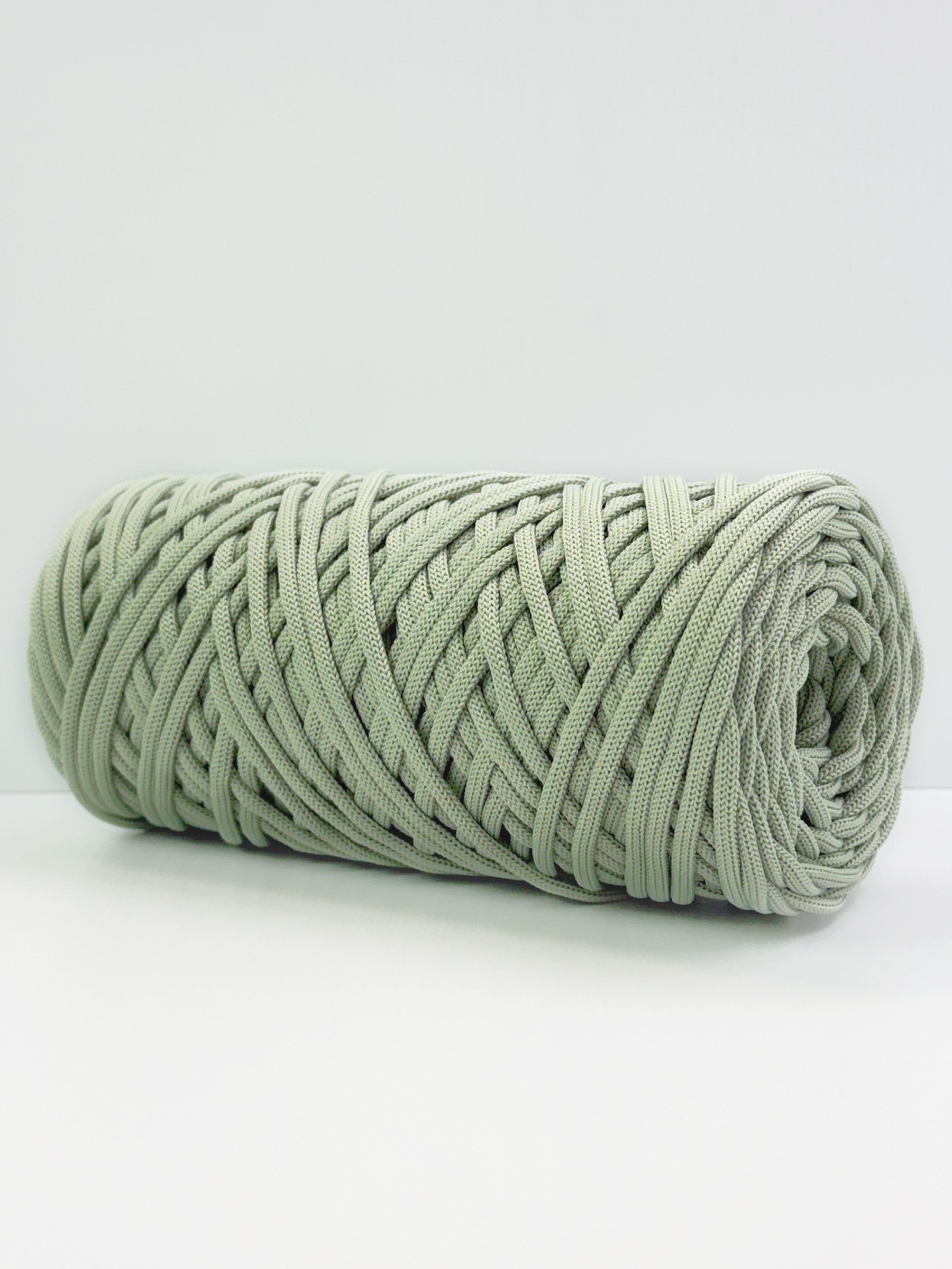 Этот шнур для вязания 5 мм полиэфирный отличается уникальным составом (полиэфир+спандекс), что придаёт ему объем и пружинистость. Сечение можно назвать овальным, у него отсутствуют четкие границы сгиба, как у плоского шнура. Это обеспечивает мягкость, делая шнур 5 мм подходящим для вязания крючком и спицами, а также для плетения в технике макраме.