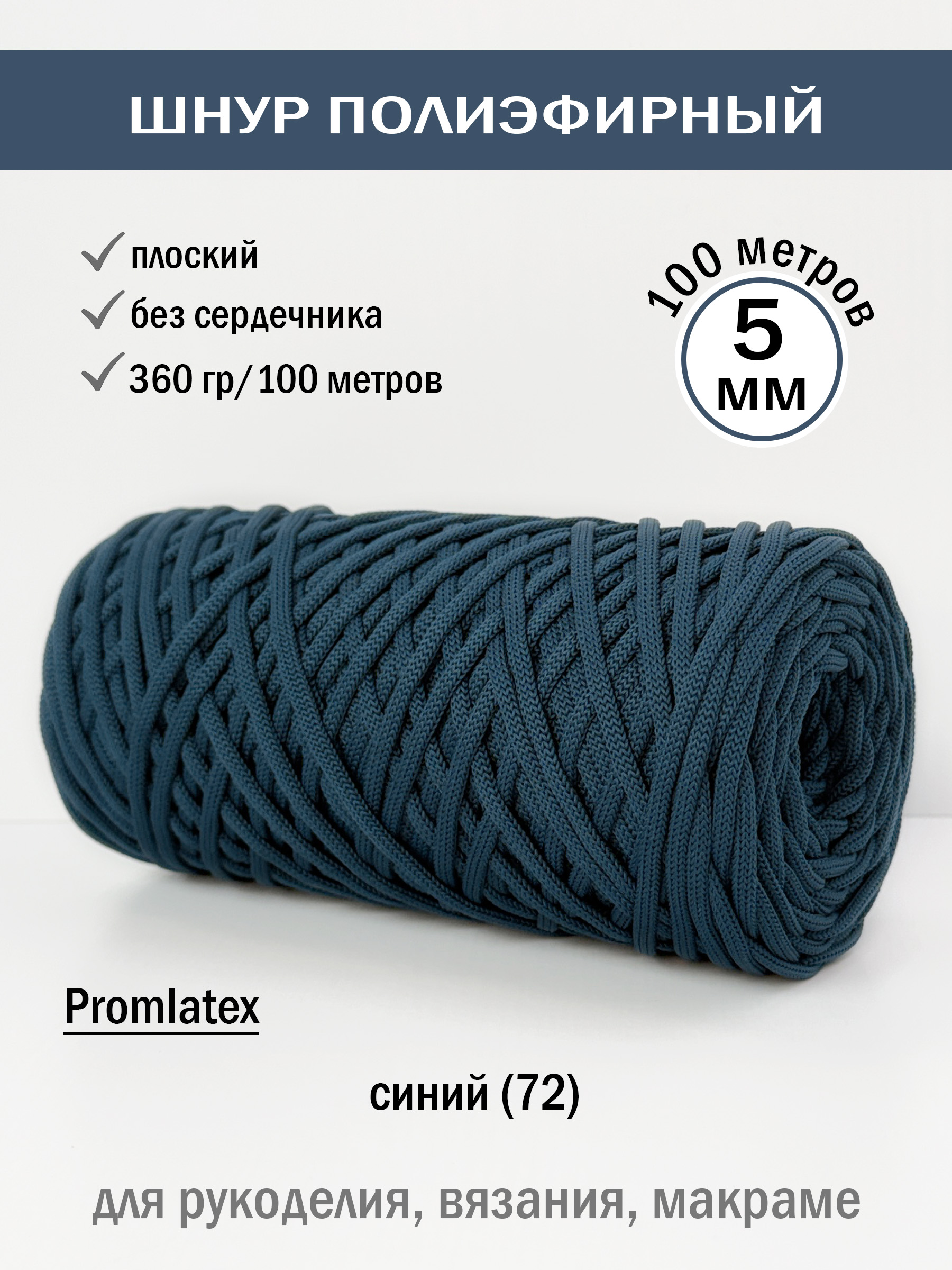 Полиэфирный шнур 5 мм без сердечника (+/-0,5) от компании Promlatex (Промлатекс) — это материал, открывающий безграничные возможности для творчества и рукоделия. Благодаря своим свойствам, он идеально подходит для создания широкого спектра изделий.
