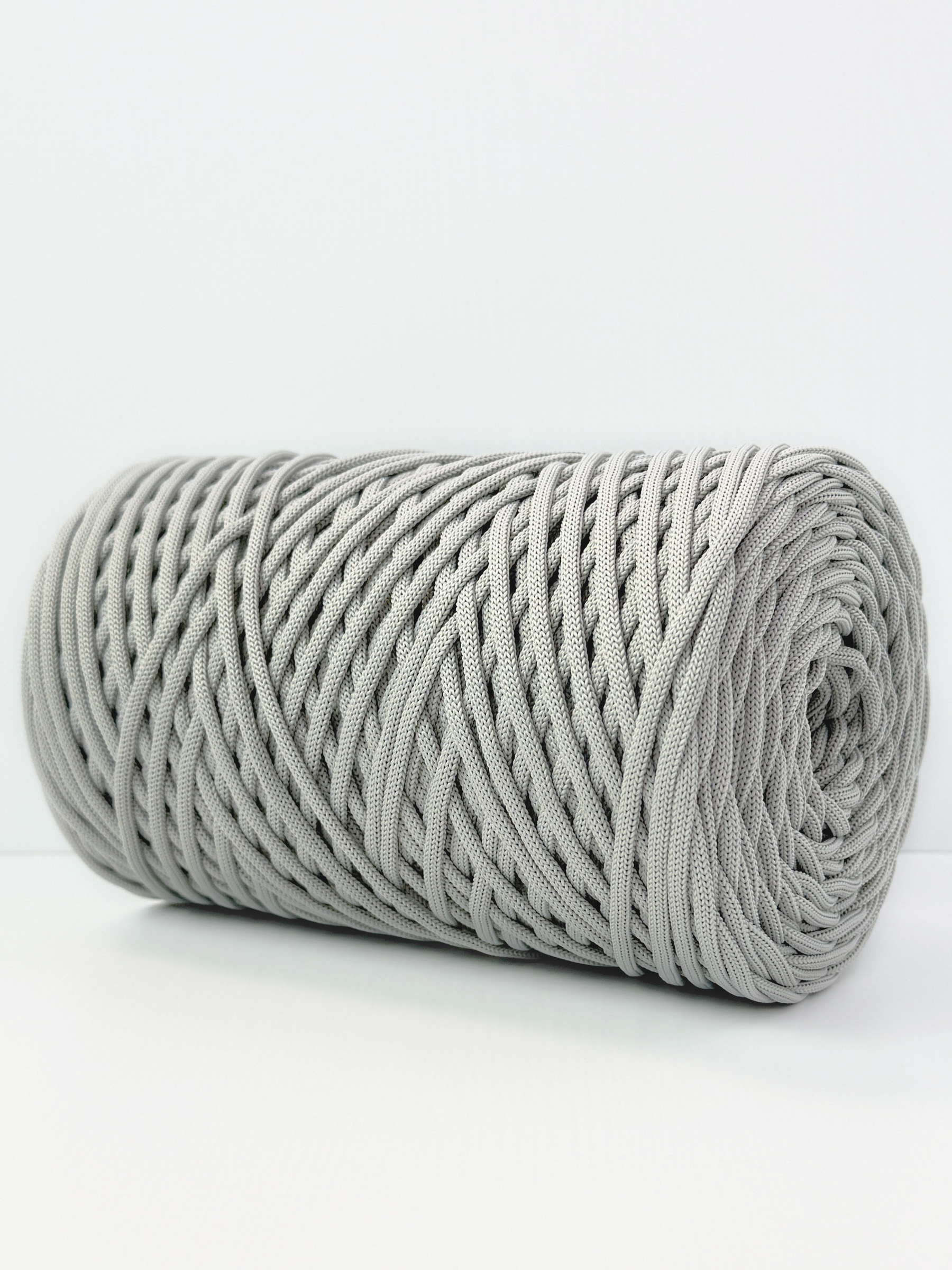 Этот шнур для вязания 5 мм полиэфирный отличается уникальным составом (полиэфир+спандекс), что придаёт ему объем и пружинистость. Сечение можно назвать овальным, у него отсутствуют четкие границы сгиба, как у плоского шнура. Это обеспечивает мягкость, делая шнур 5 мм подходящим для вязания крючком и спицами, а также для плетения в технике макраме.