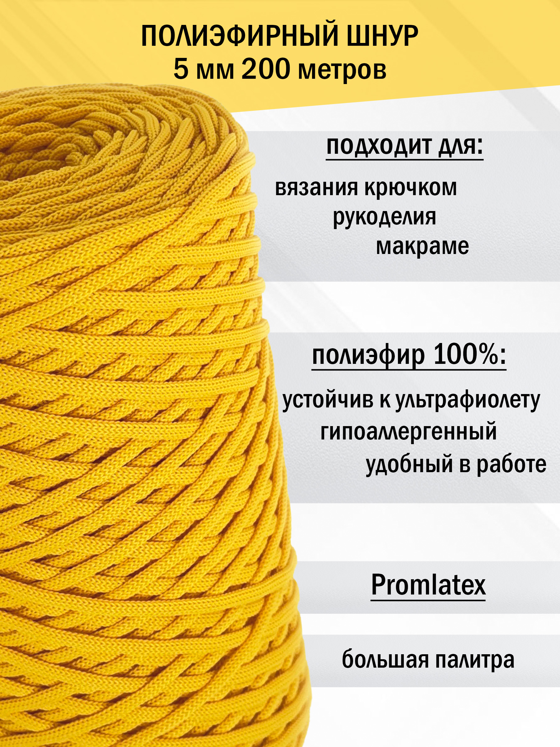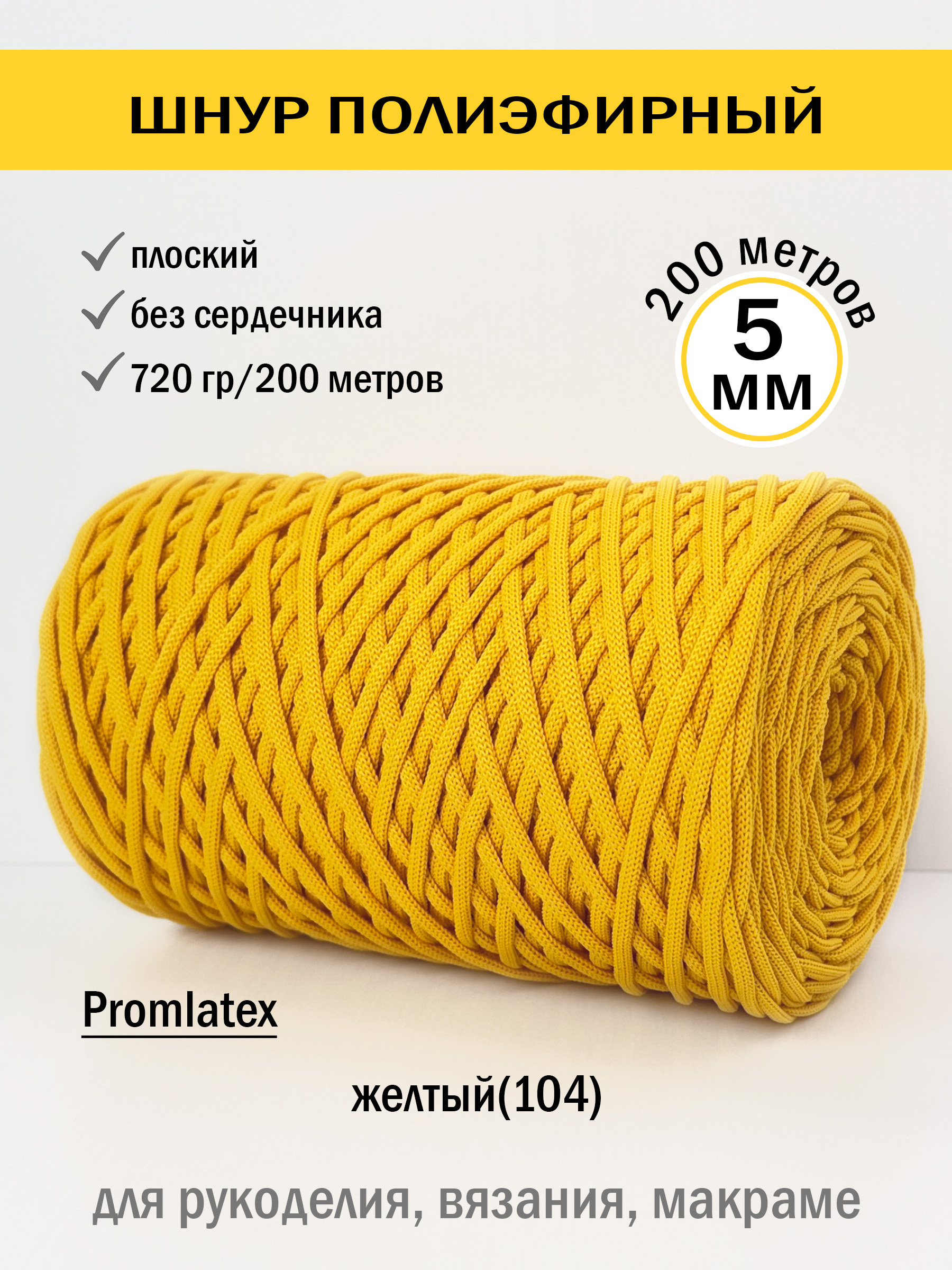 Полиэфирный шнур 5 мм без сердечника (+/-0,5) от компании Promlatex (Промлатекс) — это материал, открывающий безграничные возможности для творчества и рукоделия. Благодаря своим свойствам, он идеально подходит для создания широкого спектра изделий.